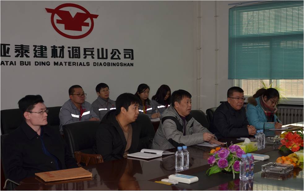 2016年12月16日,铁岭市总工会常务副主席张宏伟、总工会经济技术部部长张忠武、调兵山市总工会主席施晓颖、副主席郭凤山等一行9人莅临亚泰集团调兵山水泥有限公司,就“企业工会工作目标考核和党政领导班子工作绩效指标考核”进行调研,公司工会主席尹东及工会委员会相关人员进行了接待。